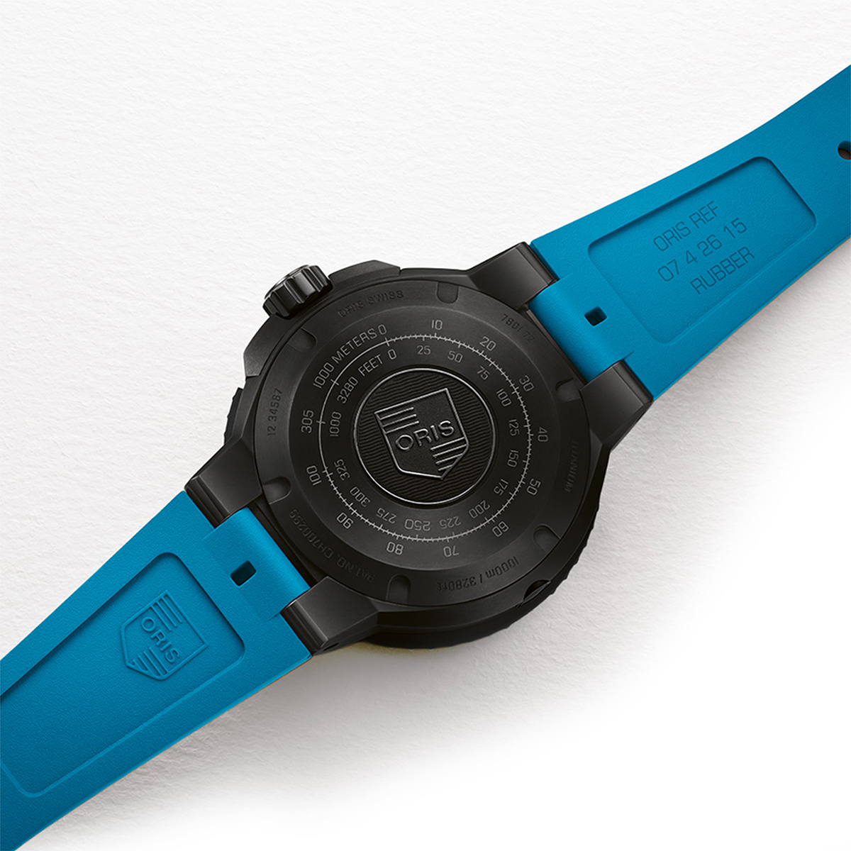 Aquis Pro 1000M, Caja de titanio en PVD, caratula azul, correa de caucho azul, resistencia al agua 1000 metros