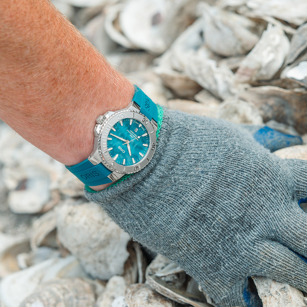 Aunque forma parte de una edición limitada, su estética mantiene el lenguaje simple y funcional propio de Oris. La combinación de colores y materiales refuerza un estilo actual sin exageración.