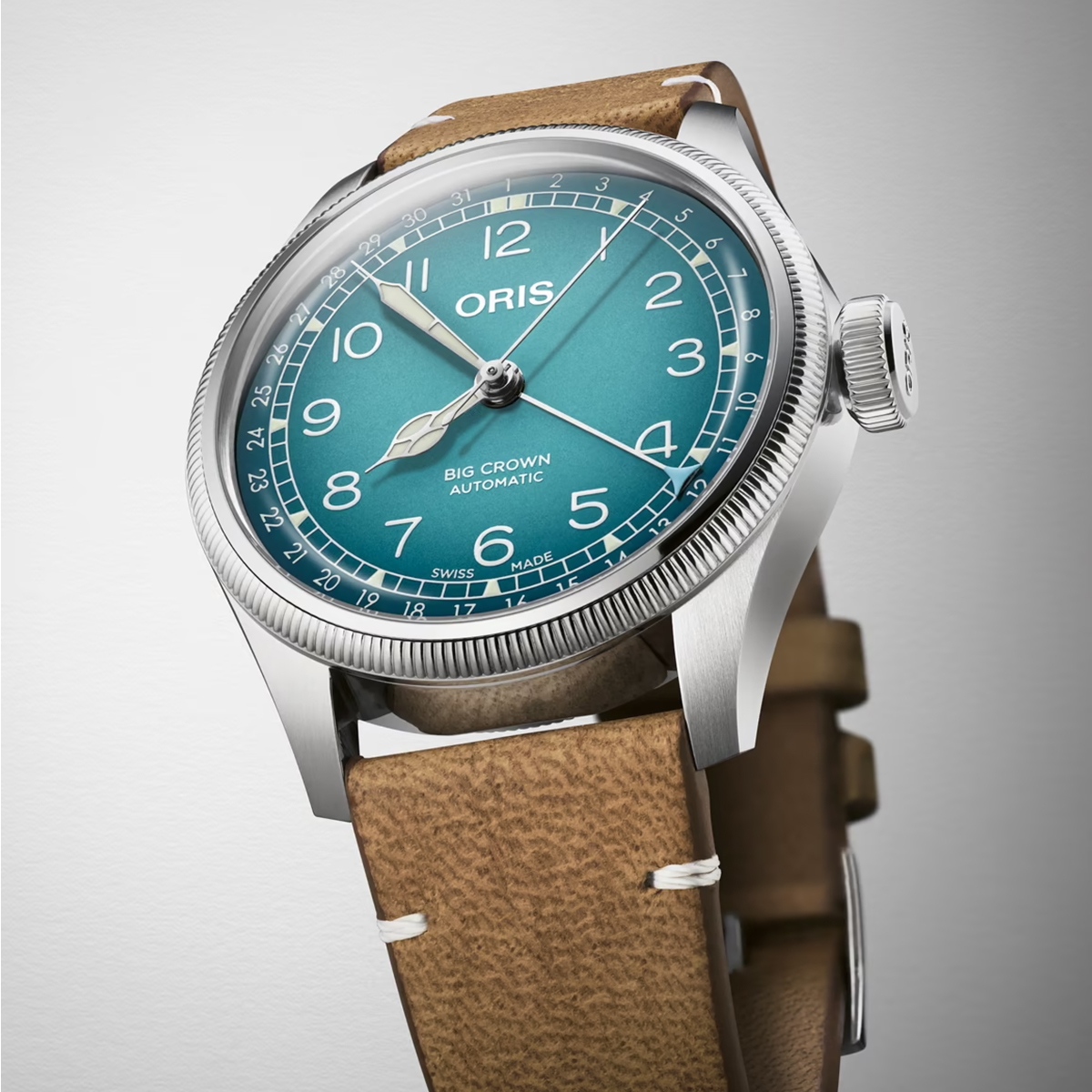Oris colabora con Cervo Volante, que utiliza piel de ciervo de programas de control de población suizos en correas de relojes. Incluido en la colección Big Crown x Cervo Volante, una pieza con 38 mm y esfera azul inspirada en los Alpes suizos.